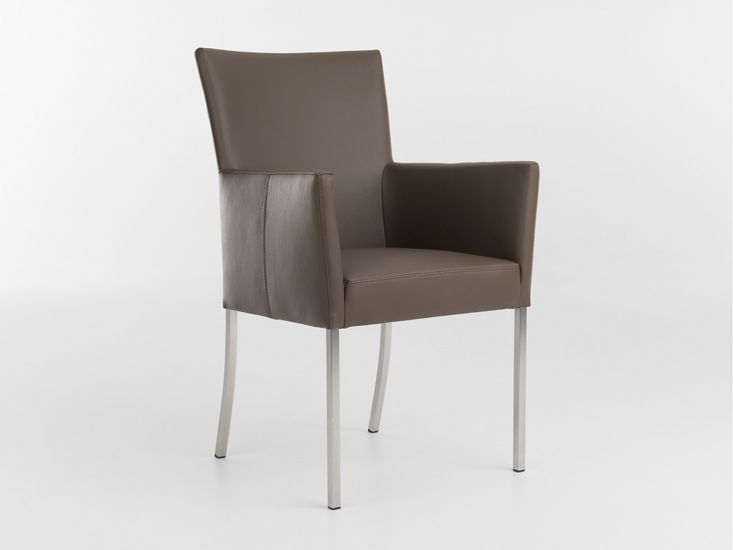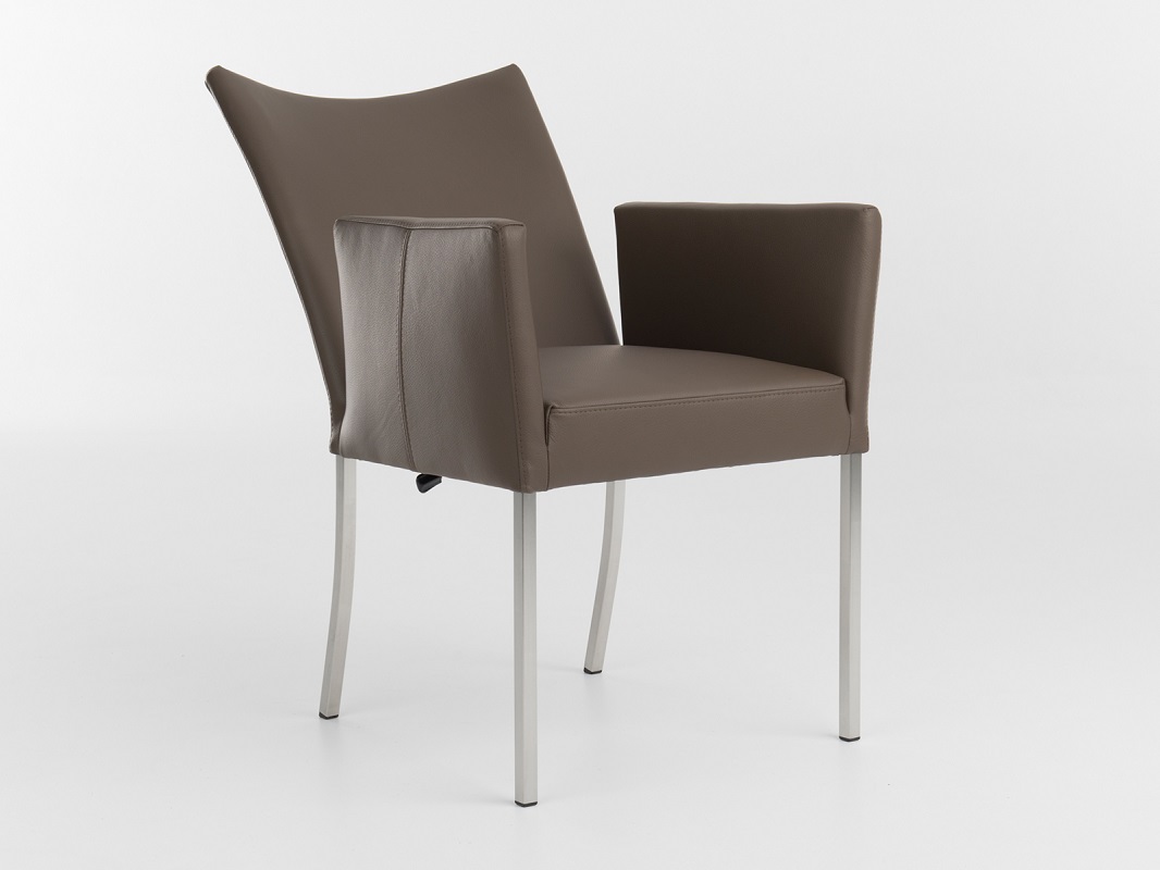 De Audrey armstoel is uitgerust met een zeer comfortabele zit en lekker brede armleuningen. Dit maakt de Audrey een perfecte stoel om uren op door te brengen. De stoere vierkante roestvrijstalen poten en het mooie lijnenspel van stiknaden geven deze bert plantagie stoel cachet. Optioneel met een flexibele rug.