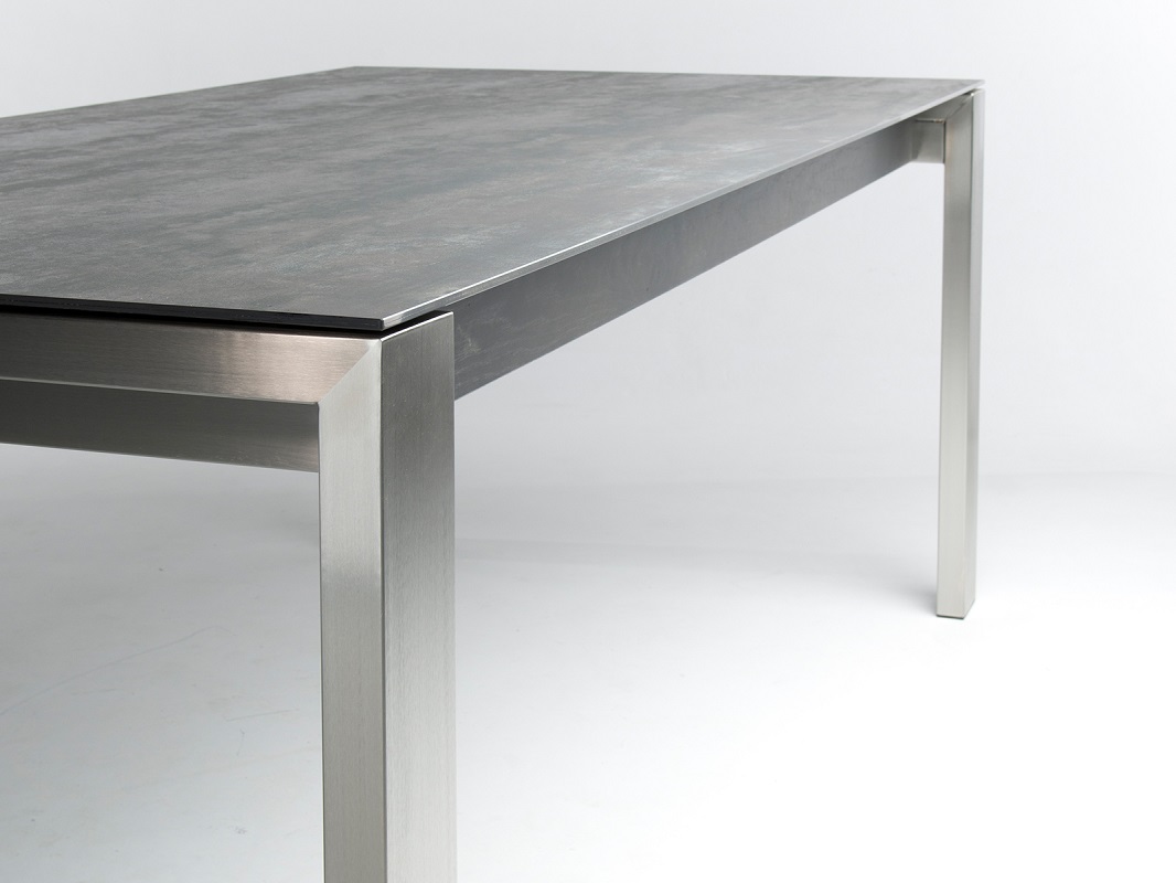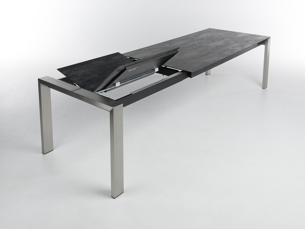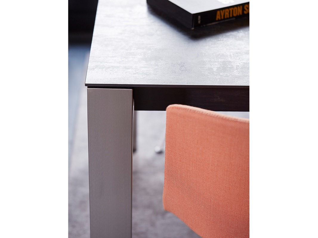 De uitschuiftafel Opi is een technisch hoogstandje in een stijlvol jasje. Want niet alleen het vaste blad, maar ook het uitschuifblad is volledig uitgevoerd in keramiek. Naast alle praktische eigenschappen van keramiek, zoals hygiënisch en krasvast, treedt er dus ook geen kleurverschil op tussen het tafelblad en het uitschuifgedeelte.