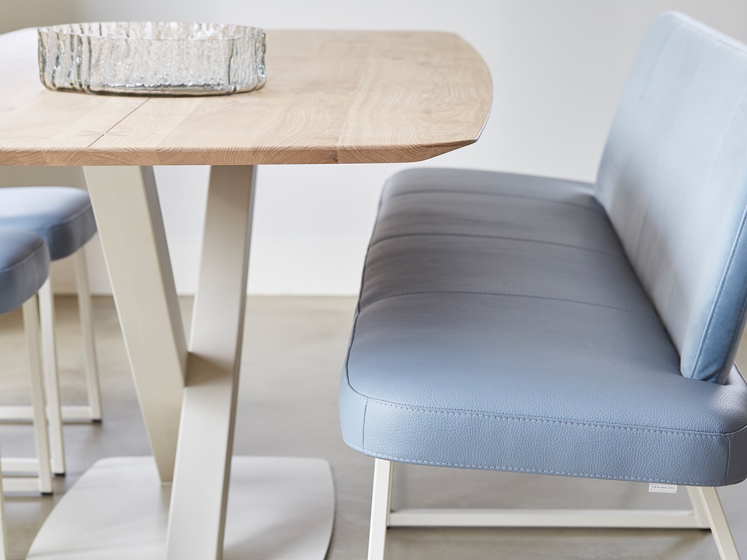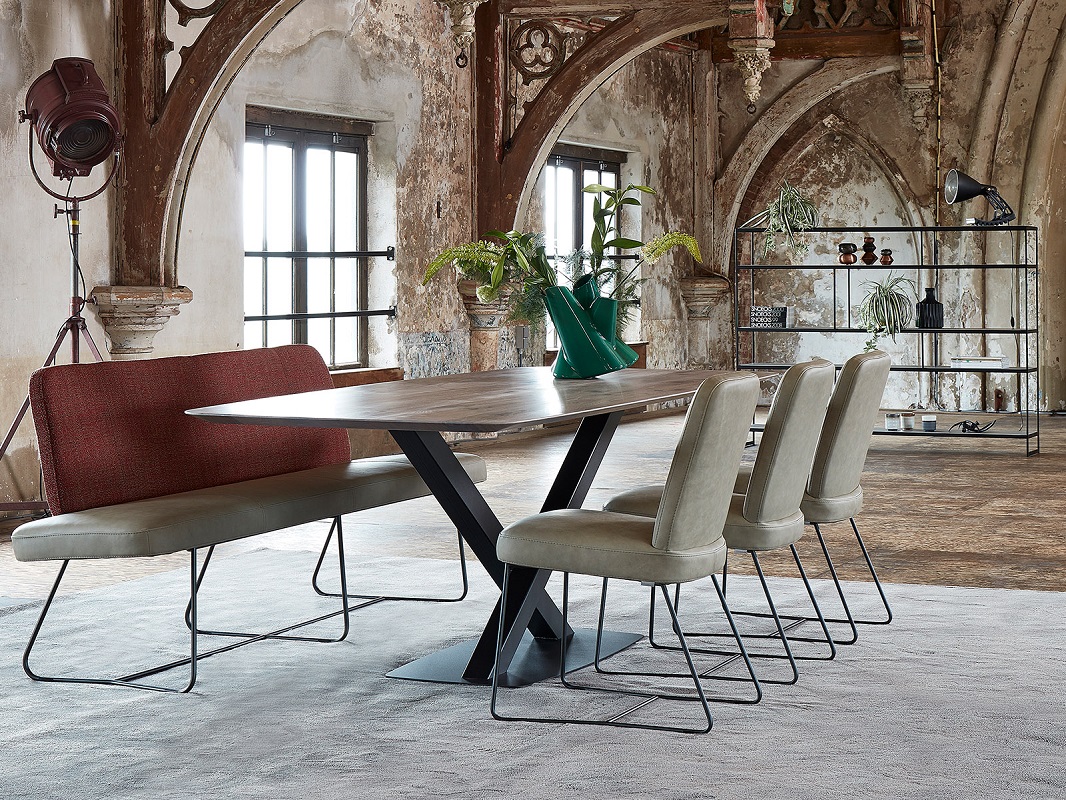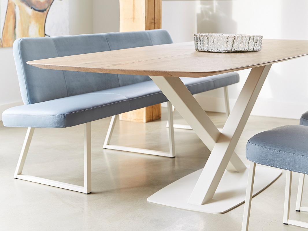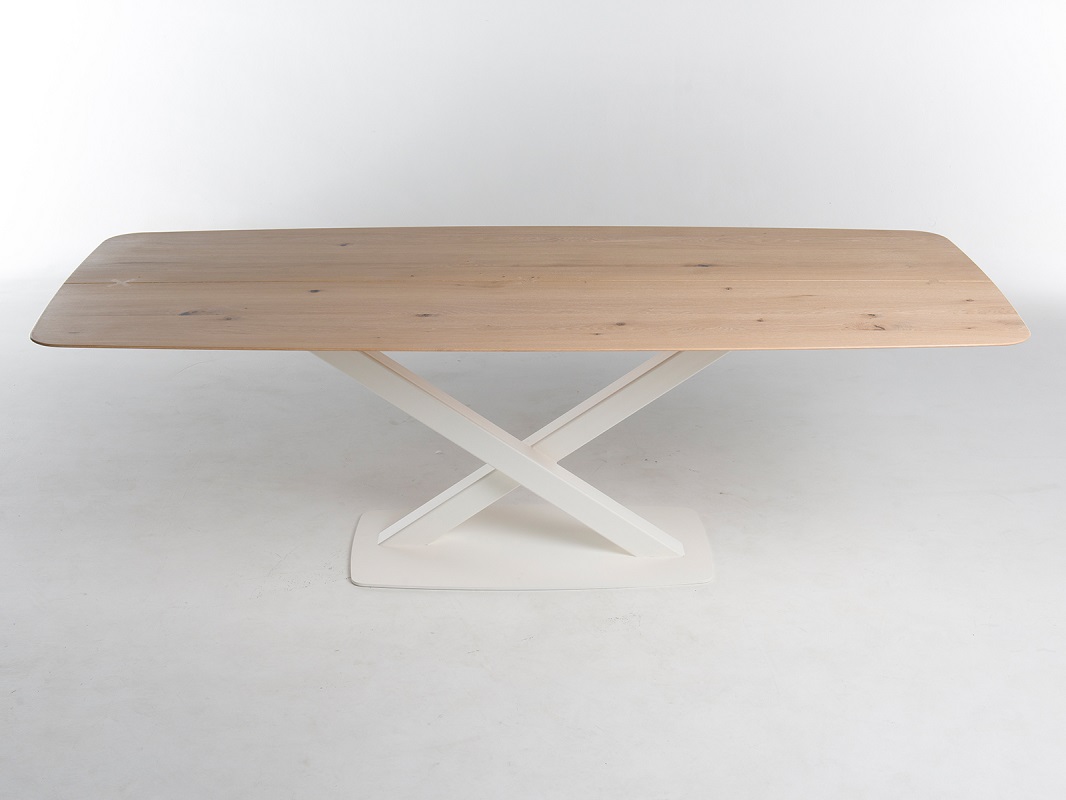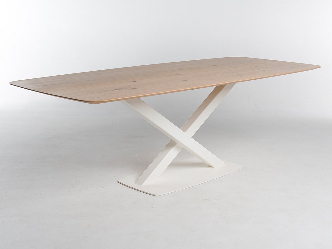 Tafel Oxxi dankt haar naam aan het creatieve onderstel met de beeldbepalende X poot. Deze mooie tafel is uitgevoerd met een subtiel dun tafelblad in speelse bootsvorm. Door de vrije hoeken heeft u de mogelijkheid ruime zitplaatsen te creëren aan tafel.