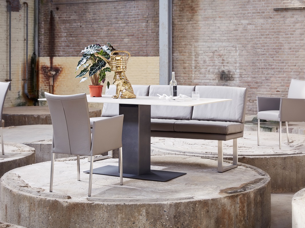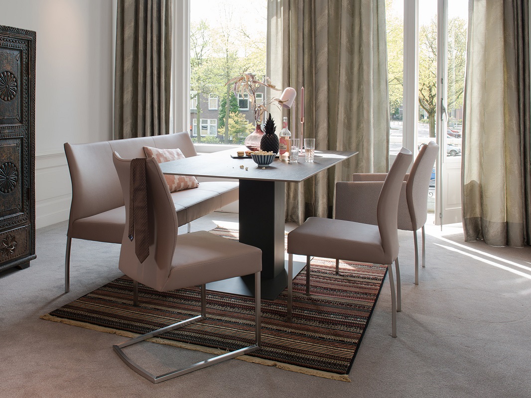 De Shelter is een chique tafel die veel ruimte creëert in uw interieur. Het blad van de Shelter rust op één zuil waardoor er maximale zitruimte is rond de tafel. Haar chique, dunne tafelblad en de opvallende zuil – leverbaar in de bert plantagie lakkleuren – zorgen ervoor dat de Shelter een praktische en opvallende verschijning is in ieder interieur.